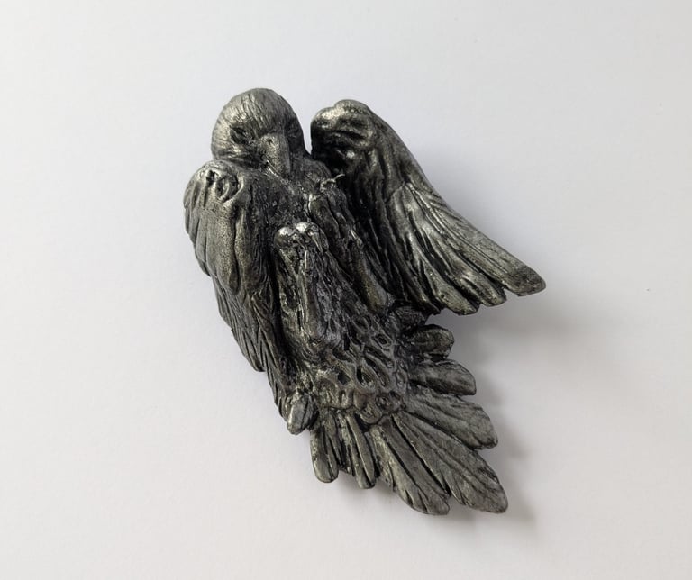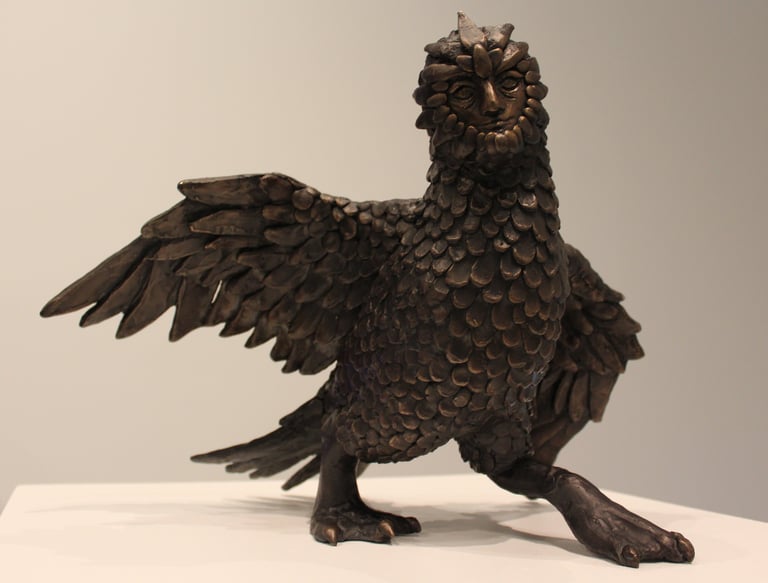 There is a beast with the head of a maiden and a winged body. Harpies were once symbols of divine justice, their beauty and swift flight once praised in writing but then their image became blurred with ferocious hunger and monstrous amalgamations of female devilry. This Harpy however remembers her charm. She is proud and boasts her breasts though covered by plumage. She does not have to align with the expectations of femininity or feel ashamed of how long her talons grow.